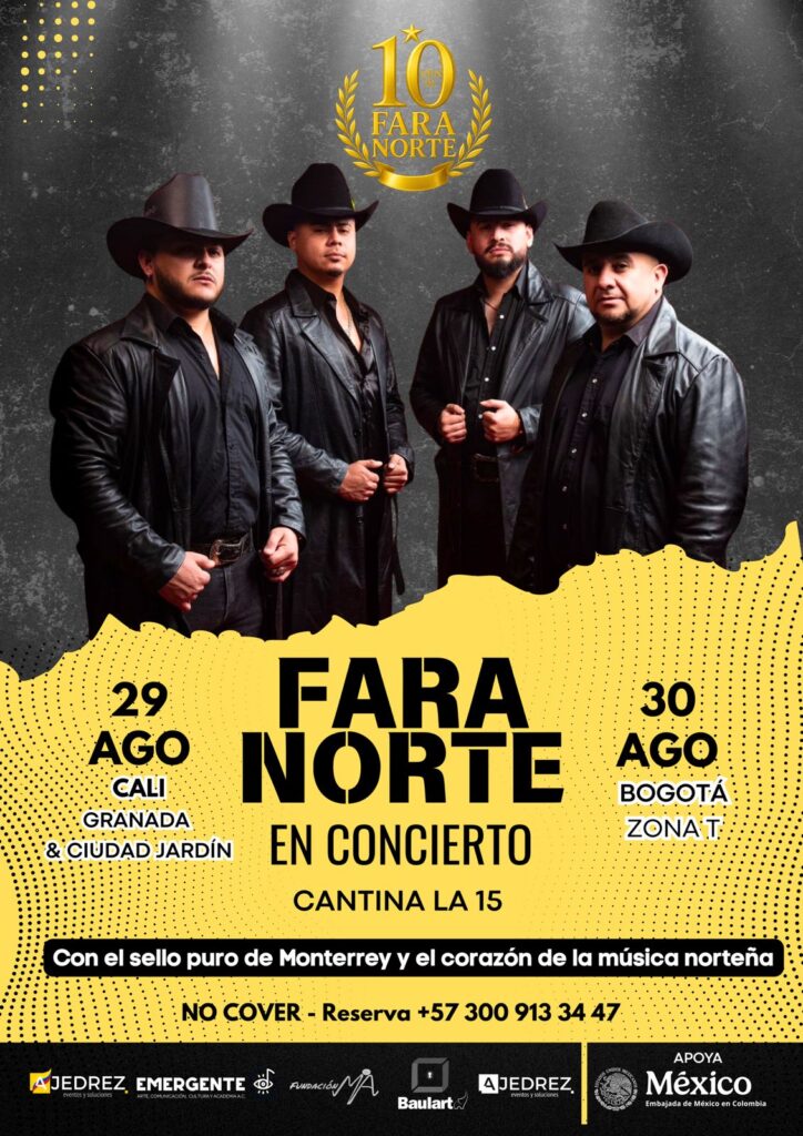 Al unirlo con “Norte”, la agrupación reafirma sus raíces y proyecta su sonido desde el norte de México hacia el mundo, honrando su tradición y marcando un estilo propio.Dos noches para vivir la fiesta norteñaLa gira “10 Años de Fara Norte” tendrá dos presentaciones imperdibles en Cantina La 15, uno de los escenarios más emblemáticos para la música mexicana en Colombia: