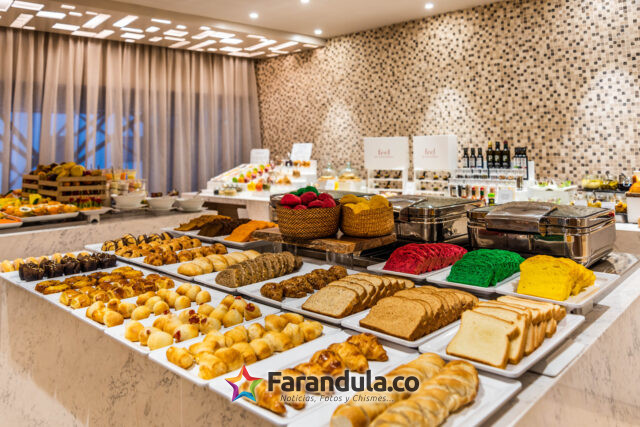 La propuesta se completa con una estación de huevos que ofrece desde preparaciones clásicas hasta propuestas como la “Cacerola Típica”, la “Tosta de Paipa” o el sándwich de pastrami en focaccia de coco. Entre los platos fuertes se incluyen opciones para compartir, como el “Mignón Cartagenero” acompañado de risotto de coco y vegetales locales, así como bandejas con fritos
