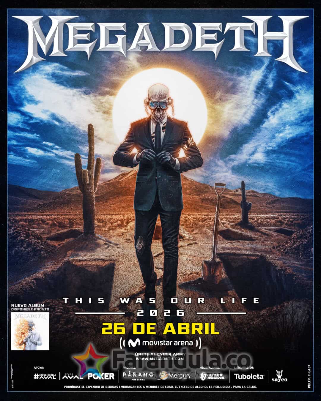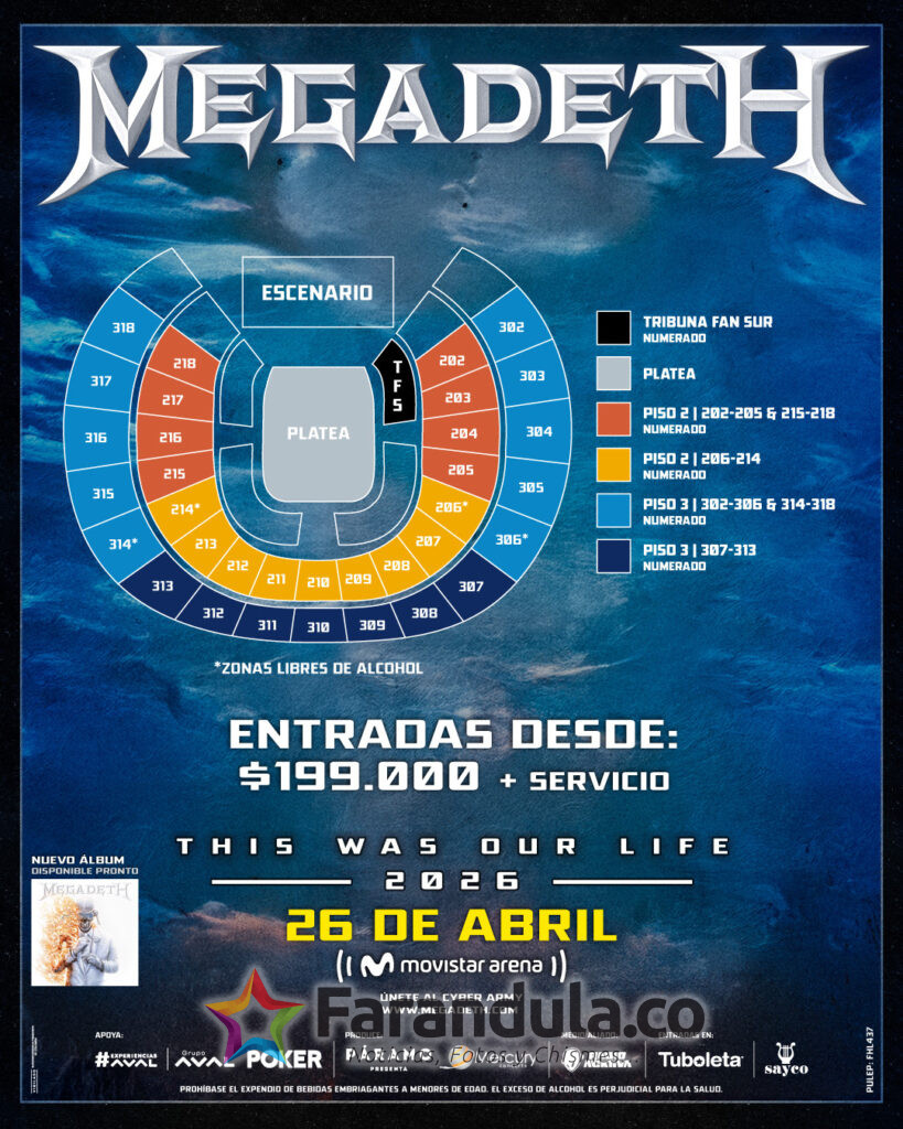 La historia del metal vivirá un capítulo irrepetible. Megadeth, una de las bandas más influyentes y poderosas del género, regresa a Bogotá por última vez como parte de su gira mundial de despedida, “This Was Our… Life Tour”, que marcará el cierre de más de cuatro décadas de carrera. La fecha elegida para este adiós inolvidable será el 26 de abril de 2026 en el Movistar Arena de Bogotá.